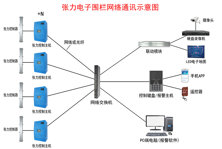 張力電(diàn)子圍欄報(bào)警系統示意圖——網絡通訊