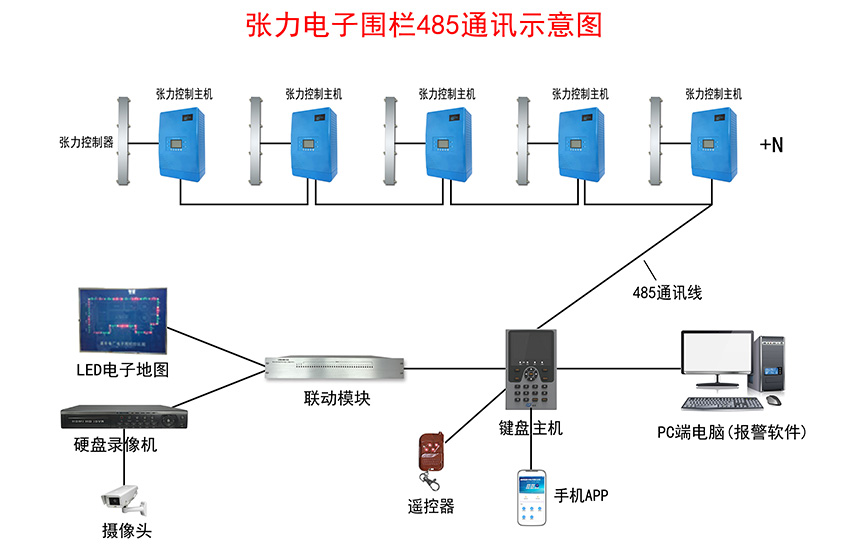 張力電(diàn)子圍欄報(bào)警系統示意圖——485通訊