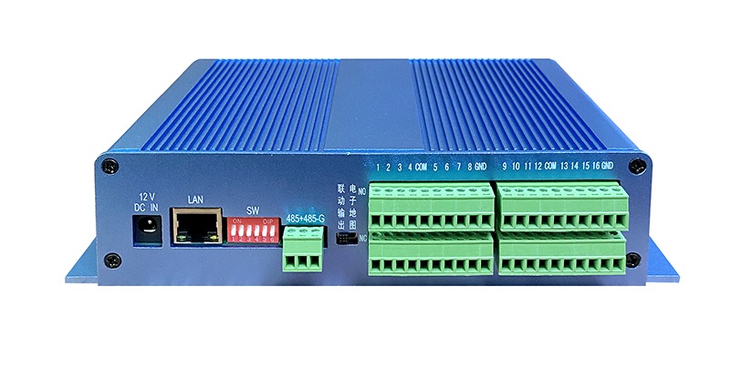 16路聯動設備 通訊方式:RS485/網絡 設備尺寸:240*121*49mm 設備供電:DC12V 設備功率:4W 端口說明: NC: 常閉開關量信号端口,用於(yú)接常閉型報(bào)警輸入設備的一端 。